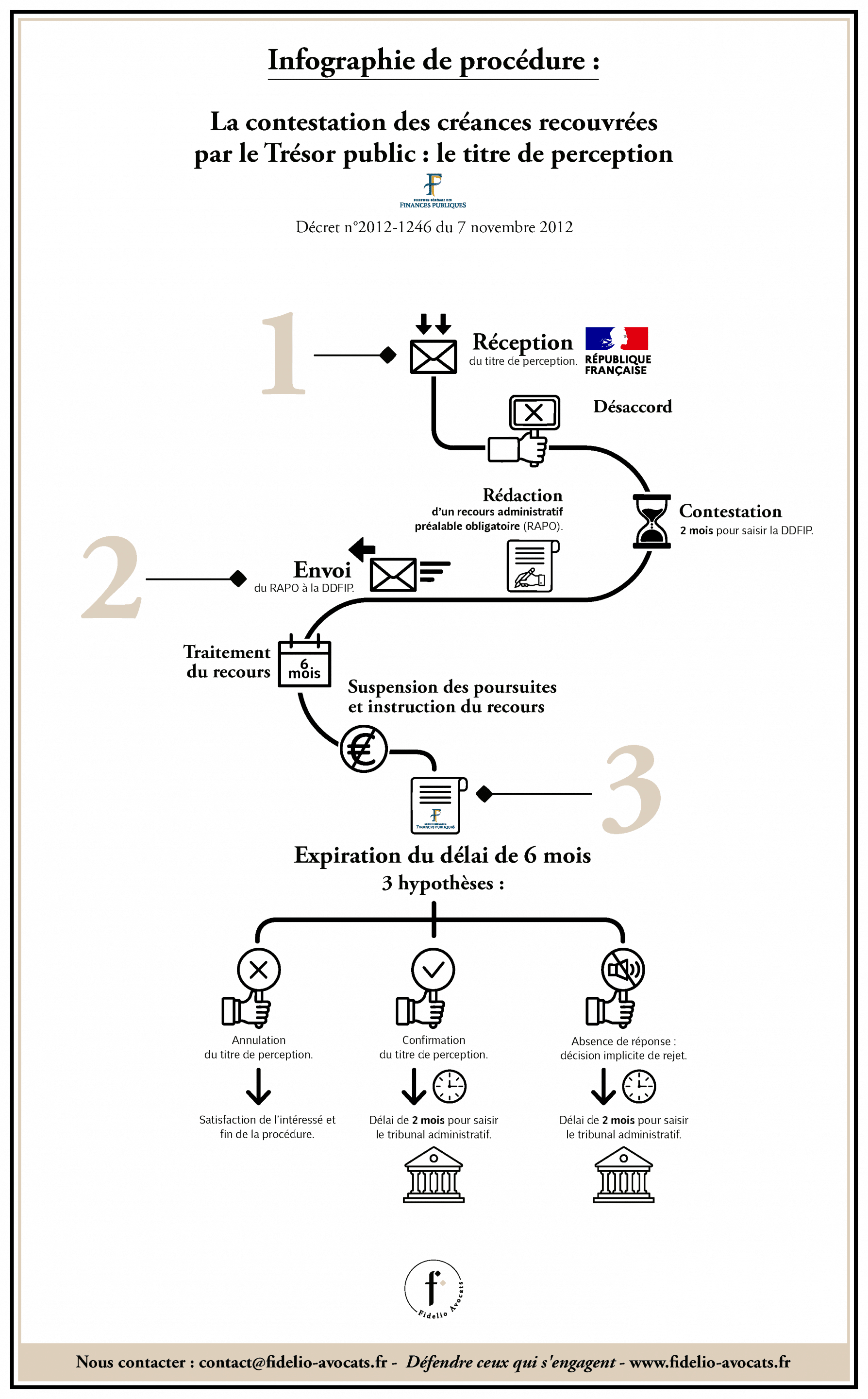 Les avocats du cabinet Fidelio Avocats sont compétents pour vous assister dans vos démarches, que ce soit tant dans le cadre du recours adminsitratif préalable obligatoire devant le comptable public, que devant le juge adminsitratif.